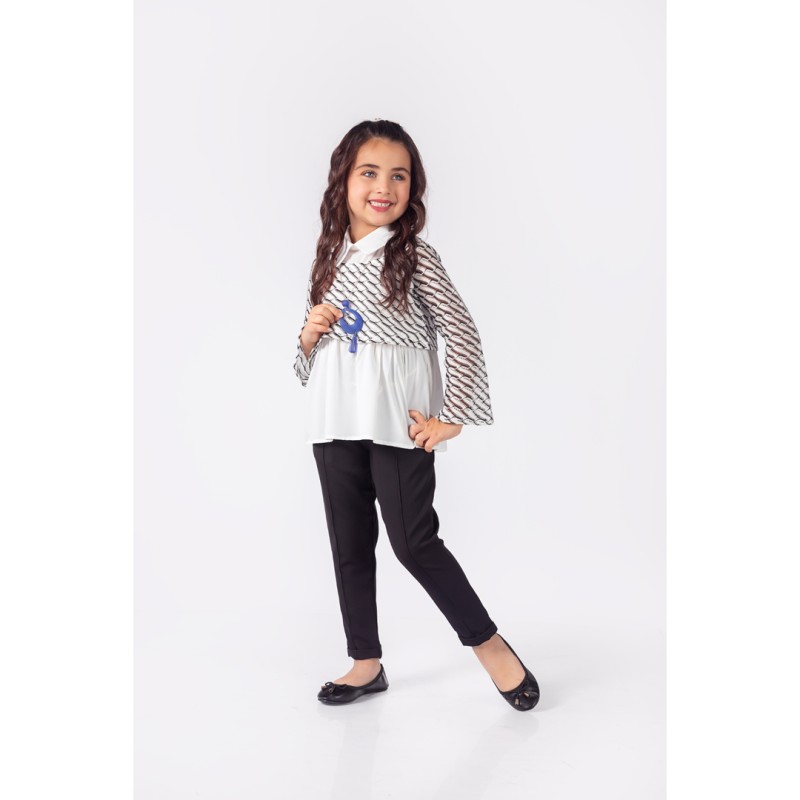 Wholesale Girls 3 Pieces Shirt, Gilet ve Pants Set 8-11Y Pafim 2041-Y23-3217 - Black