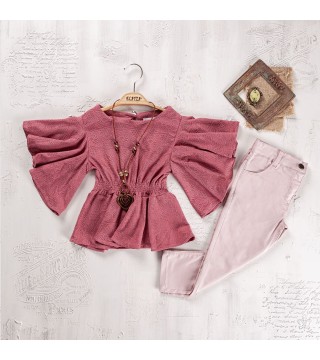 Wholesale Girls 2-Piece Blouse and Pants Set 8-12Y Moda Mira 1080-7131 - Light Orange