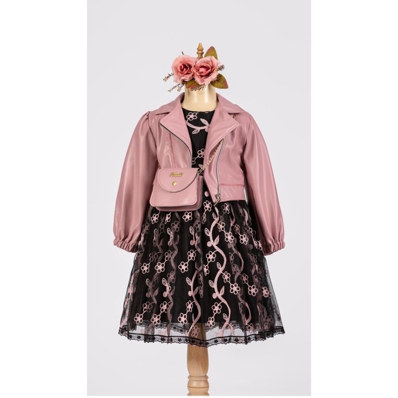 Wholesale Girls 3-Piece Dress, Jacket and Bag Set 6-12Y Tivido 1042-2541 - Blanced Almond