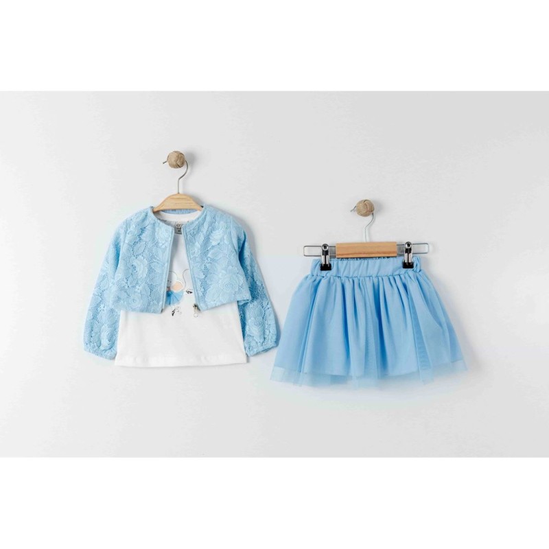 Wholesale 3-Pieces Jacket, T-shirt and Skirt Set 1-4Y Eray Kids 1044-13308 - Blue